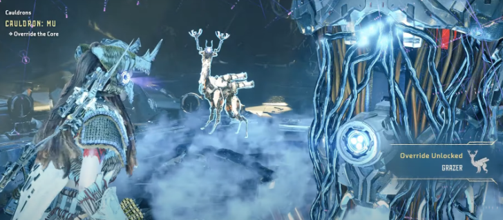 But the most interesting part is how players obtain Overrides. You see, the player first has to unlock the ability to override certain machines. This is done via Cauldrons! Cauldrons, in Horizon, are the “factories” where the machines are made. Cauldrons narratively fit very well in the world of Horizon, mainly since the existence of these machines is what makes Horizon so interesting.